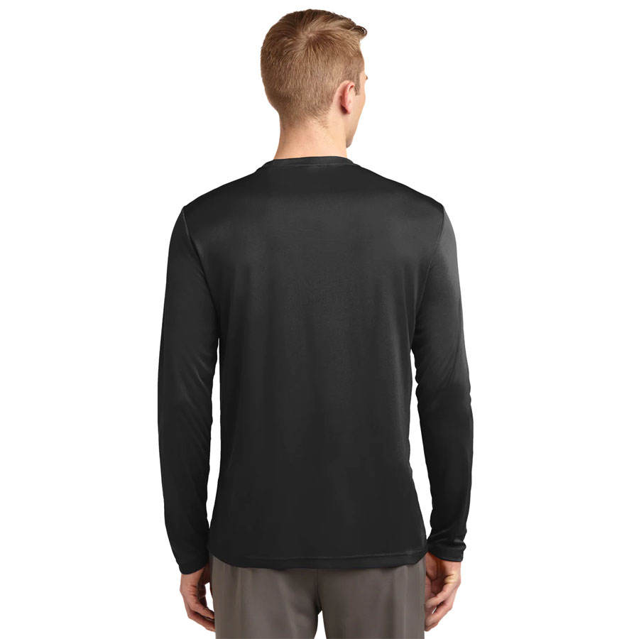 100% polyester homme concurrent évacuation de l'humidité à manches longues t-shirt à col rond noir