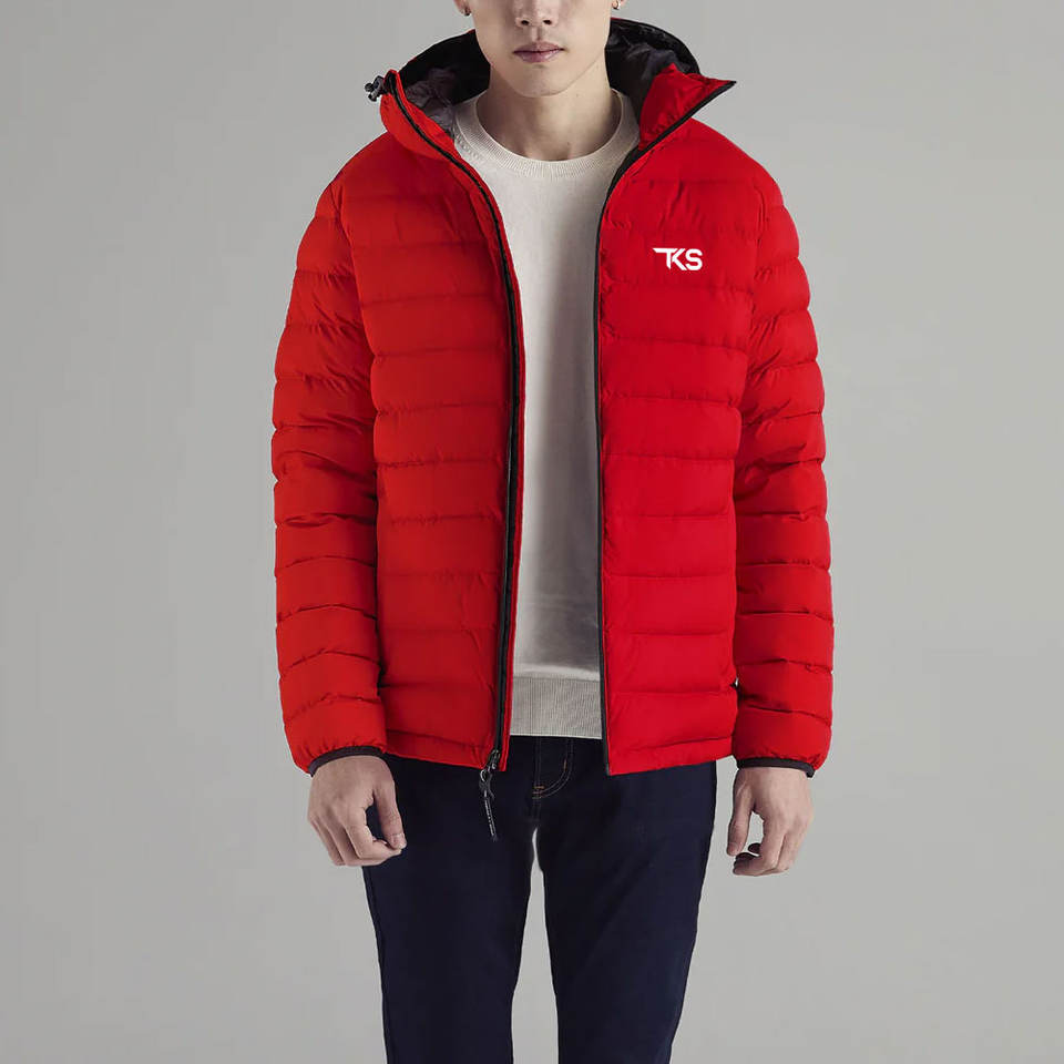 100% polyester hommes couleur rouge matelassé personnalisé Bomber veste hommes matelassé et rembourré bouffantes vestes