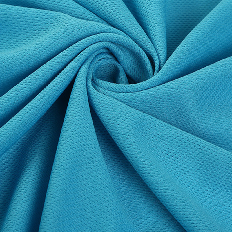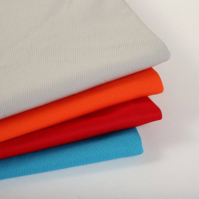 100% Polyester Hommes T-shirt Tissu 145GSM Tricoté Piqué Sportswear avec Bird Eye Design pour Filles Stock Lots De Fabricants