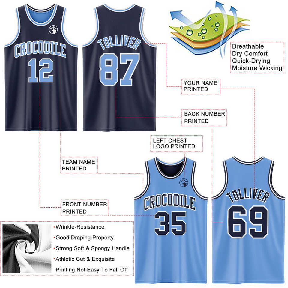 Ensemble d'uniformes de basketball réversibles 100 % polyester, maillot sublimé en mesh professionnel, short bleu nuit anti-humidité, séchage rapide