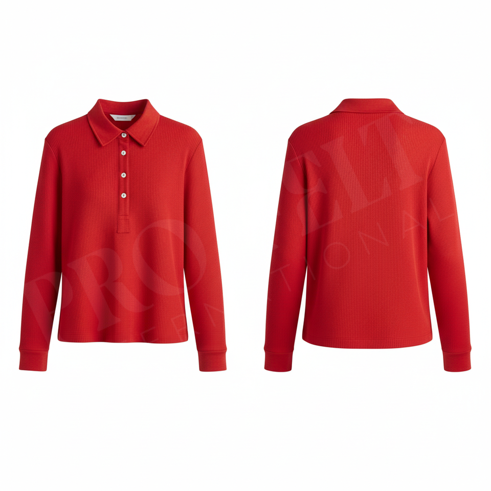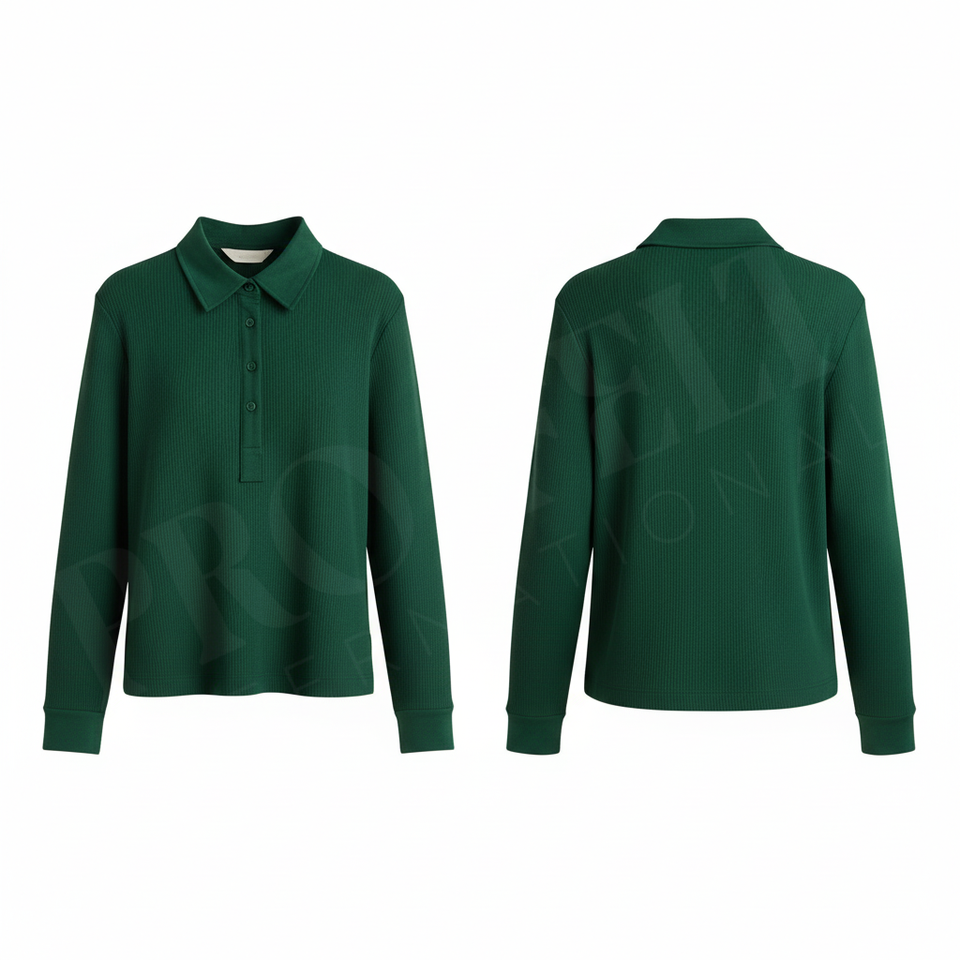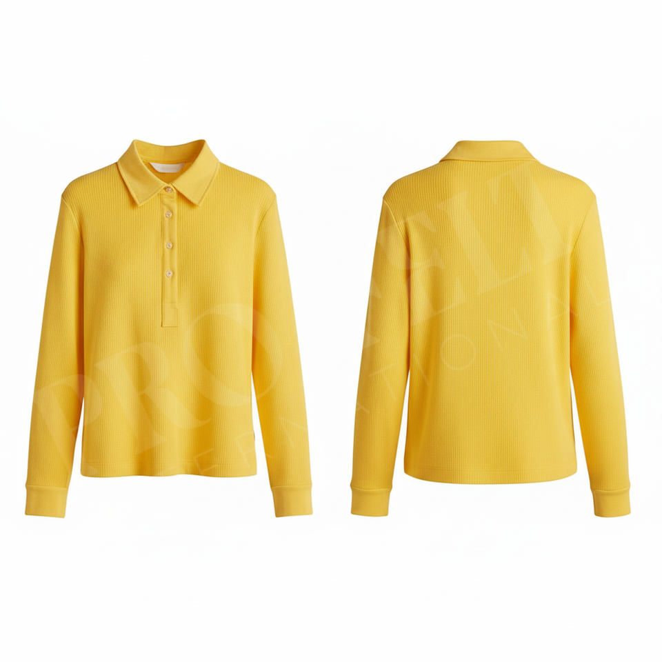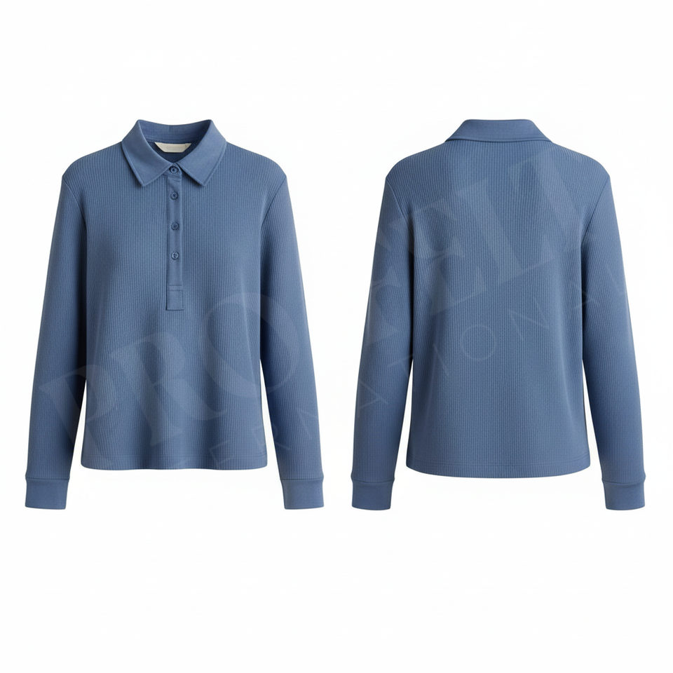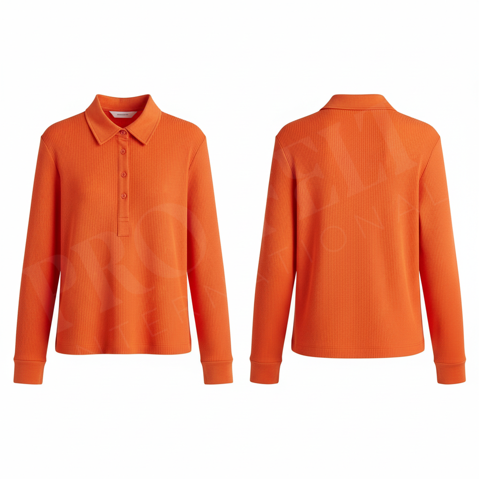 Polo à manches longues en tricot côtelé 100% polyester, coupe ajustée décontractée, col boutonné, extensible et doux, automne-hiver, polo personnalisé