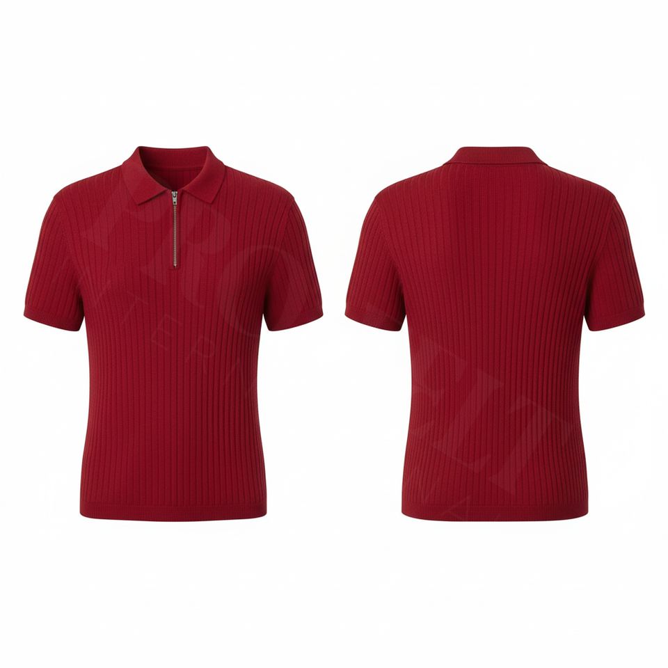 Polo en polyester côtelé 100 %, doux, confortable, uni, avec fermeture éclair, pour hommes, vente en gros, prix bas.