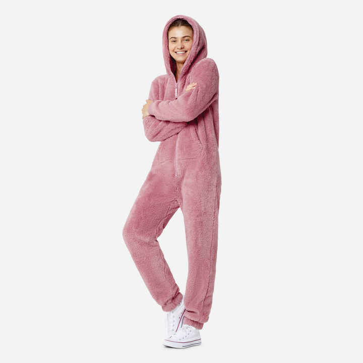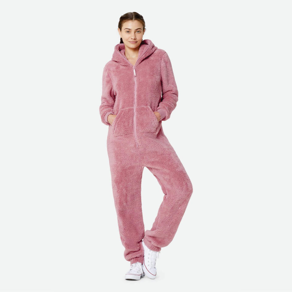100% Polyester doux et extensible polaire tissu bidirectionnel YKK qualité fermeture éclair unisexe rose chiot combinaison respirant