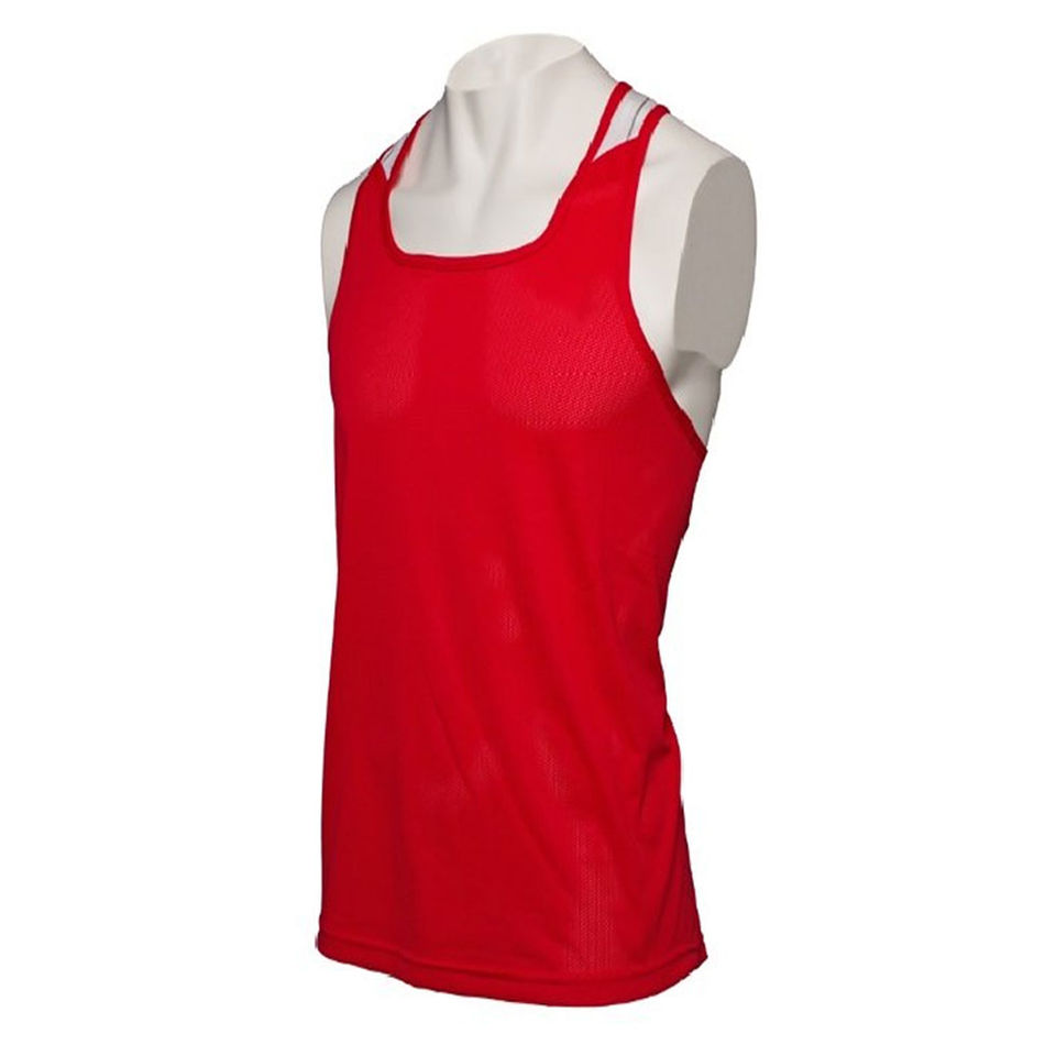 Tenue de boxe 100 % polyester extensible, légère et respirante, ensemble gilet et short rouge imprimé sur mesure, prix abordable, OEM respirant