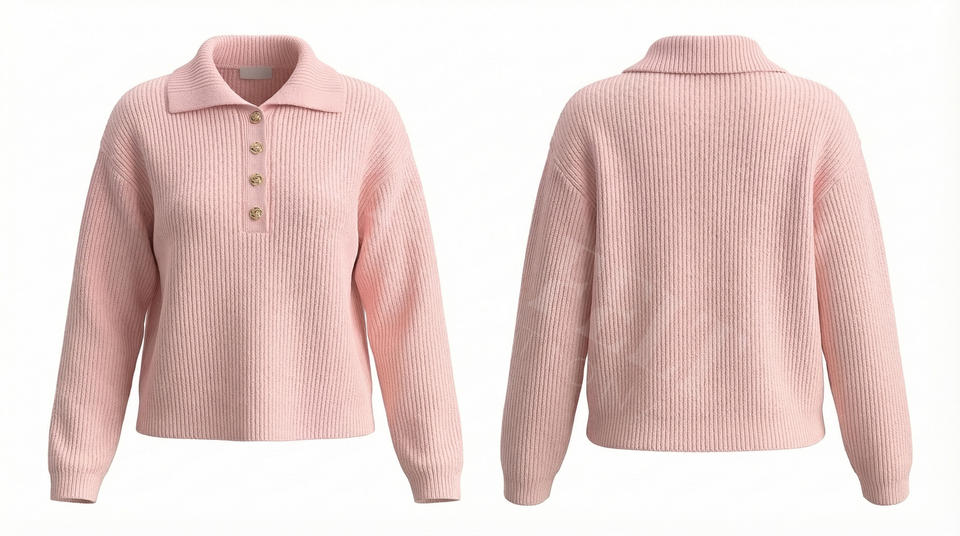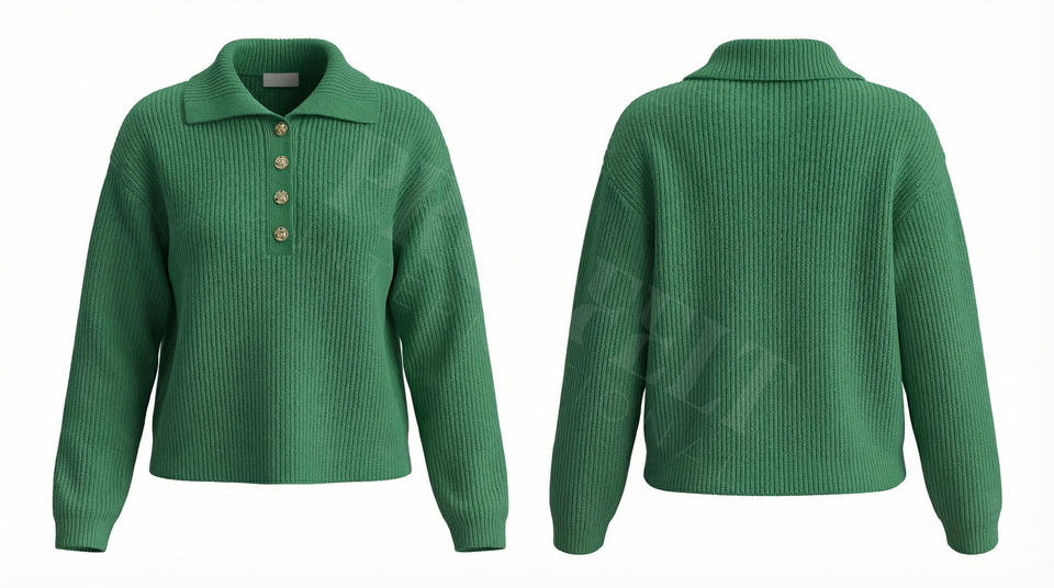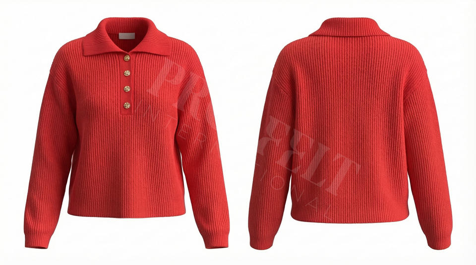 Pull polo côtelé élégant 100 % polyester avec boutons sur le devant, pull décontracté en maille, confortable, doux, tendance, à manches longues