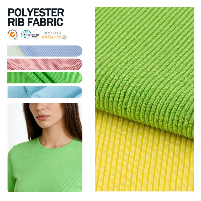 Tissu côtelé 100 % polyester épais 1x1, 2x1, 3x3 teint, jersey côtelé pour poignets, cols et vêtements