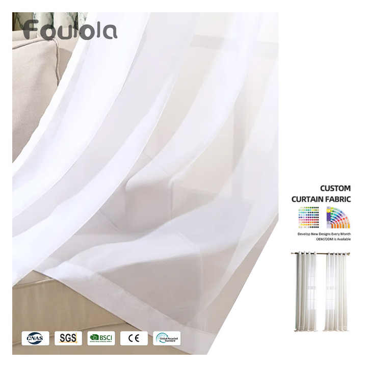 Rideau Voile 100% Polyester Style Uni Blanc Transparent avec Motif Tissé, Emballé en Rouleau