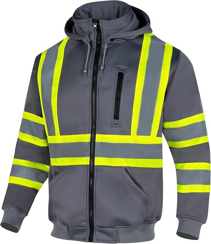 100% Polyester Hiver Personnalisé Haute Visibilité Multi Poches Avant Fermeture Éclair Réfléchissant À Capuche De Sécurité En Gros