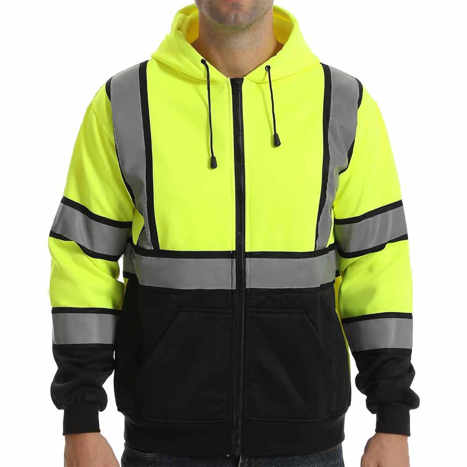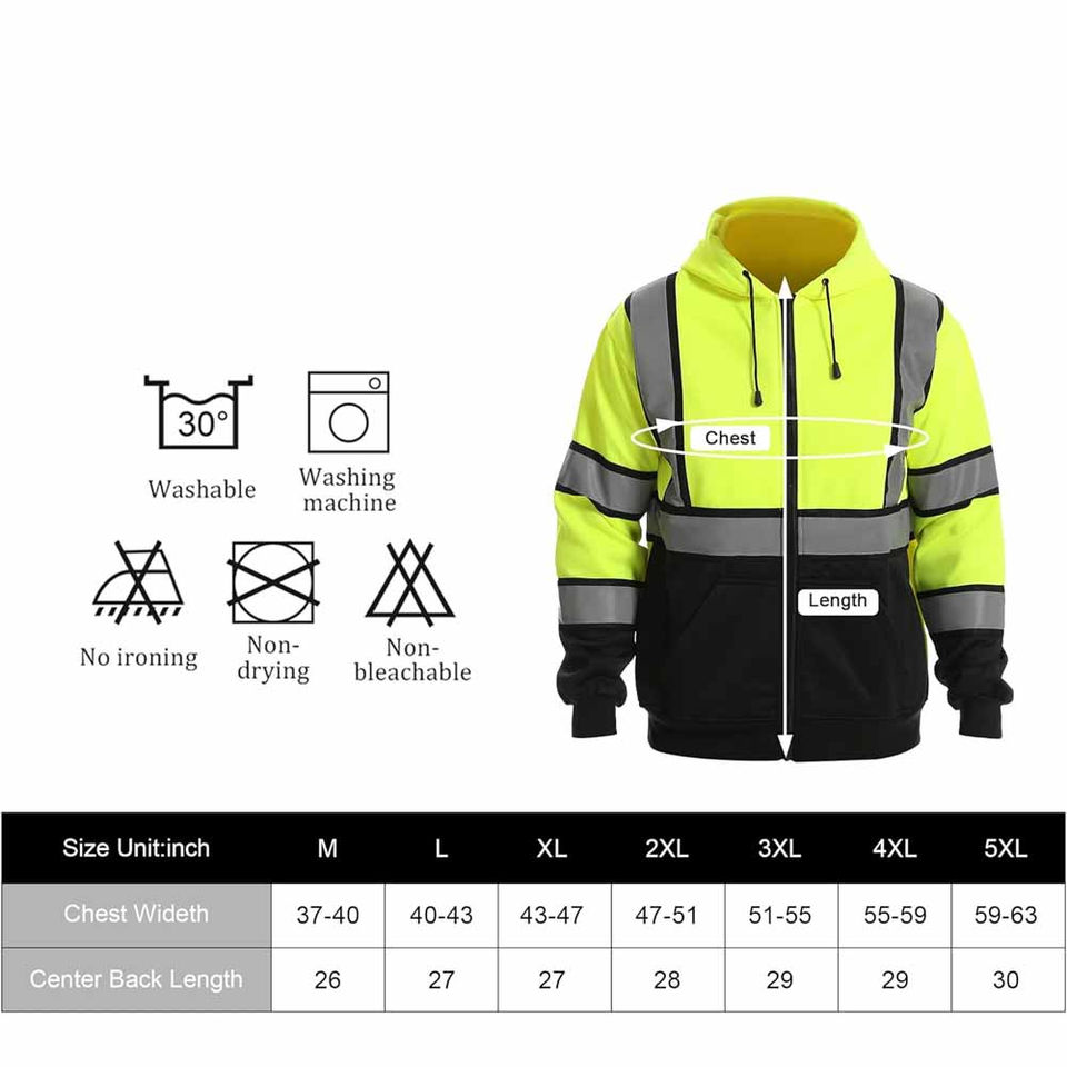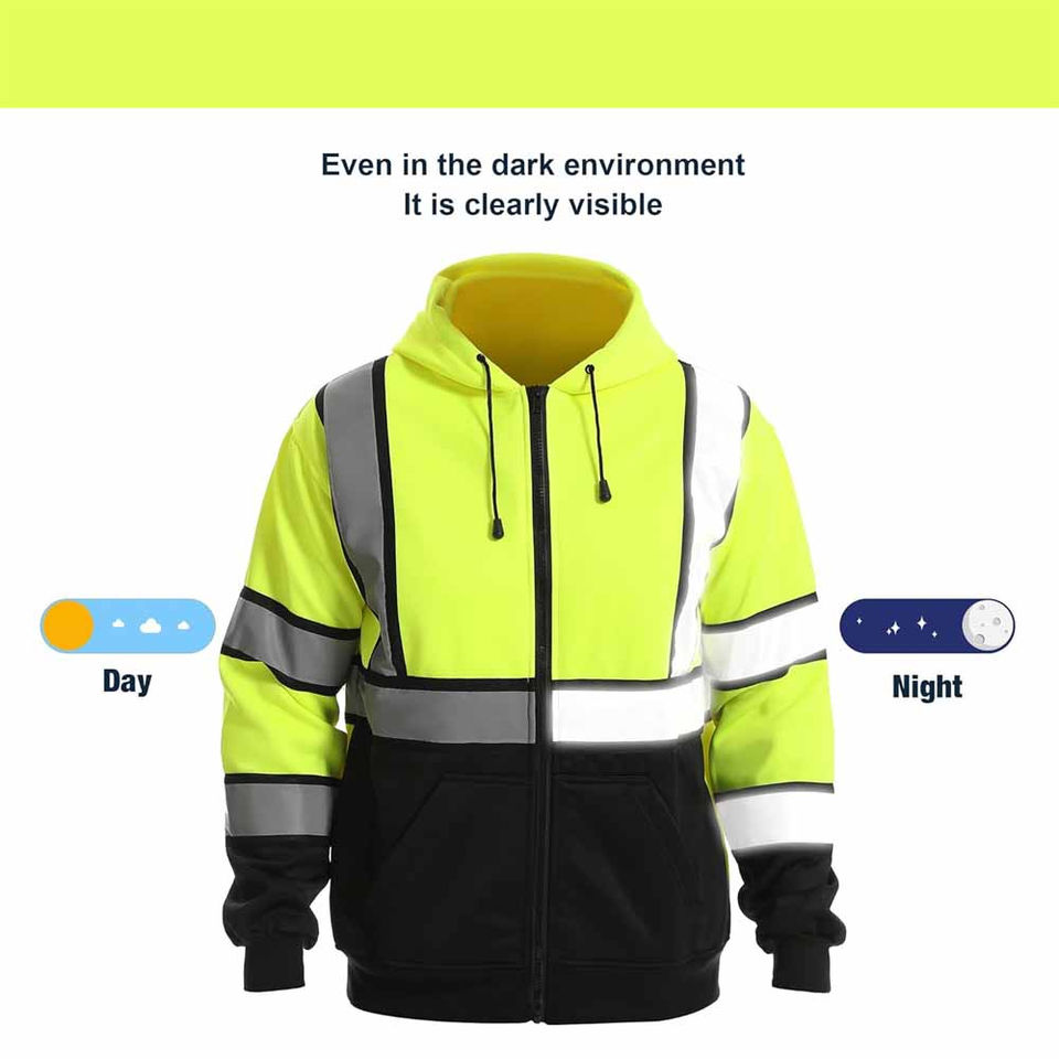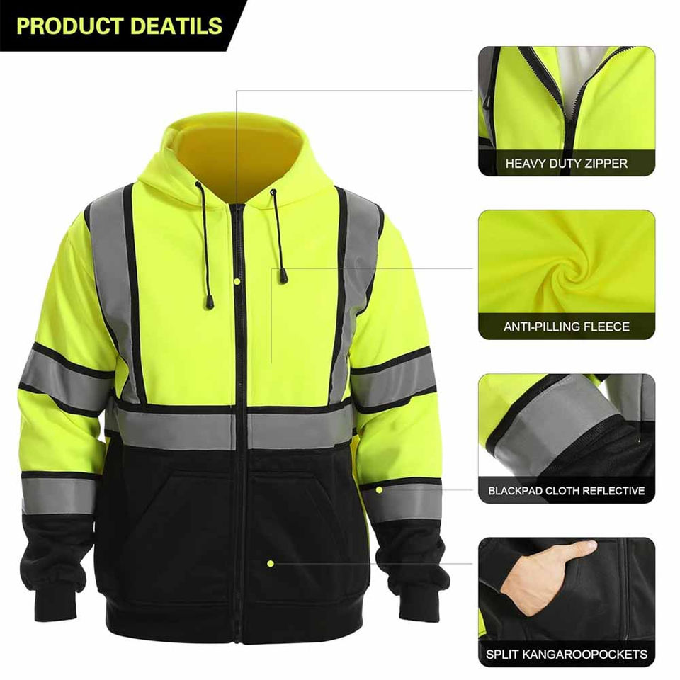 Sweat-shirt de sécurité réfléchissant à haute visibilité, 100 % polyester, hiver, personnalisé, multi-poches, fermeture éclair avant, en gros
