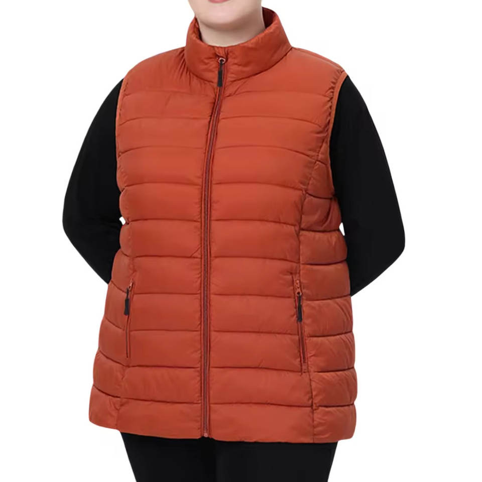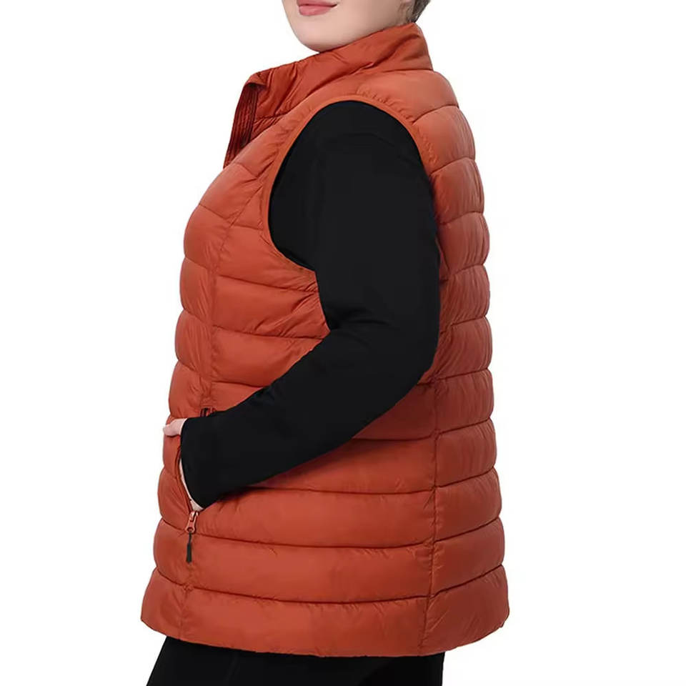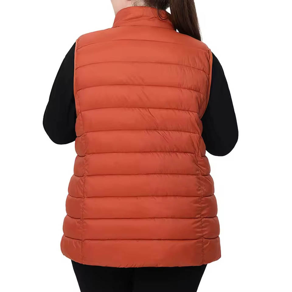 Gilet matelassé pour femme, 100% polyester, vêtement d'hiver, respirant, look élégant, sans manches, taille standard, col montant, style décontracté