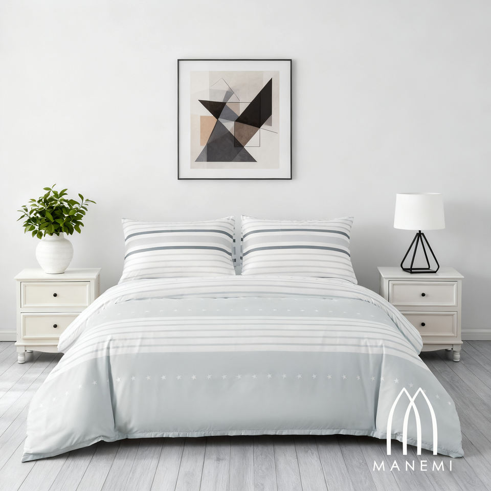 Ensemble de housse de couette zippée rayée moderne 100% polyester tissé avec taie d'oreiller, doux et respirant pour un sommeil confortable à la maison