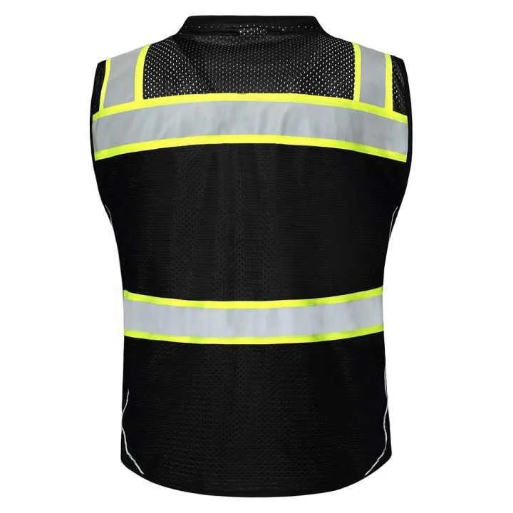 Gilet de sécurité réfléchissant à haute visibilité 100% polyester, fermeture éclair avant, gilet de sécurité pas cher avec logo