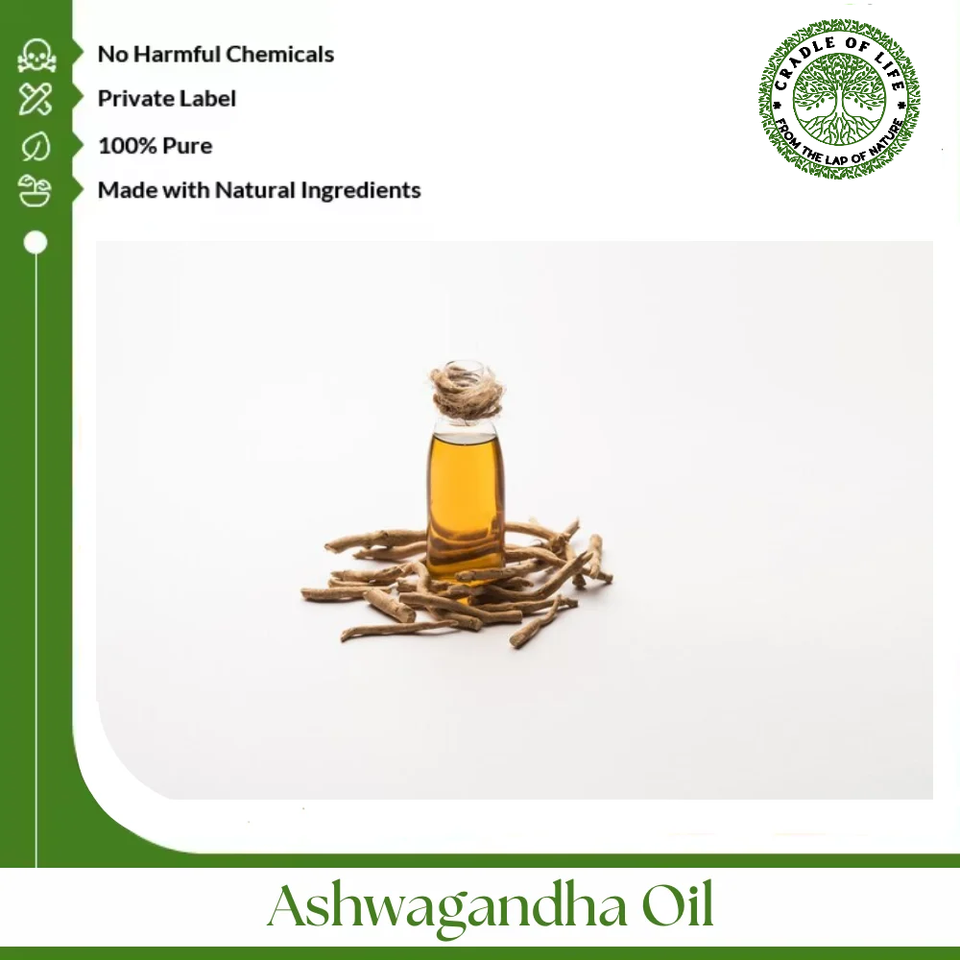 Huile d'extrait de racine d'ashwagandha 100% pure pressée à froid pour usage cosmétique, fabriquée en Inde