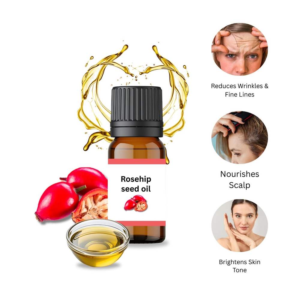 100% Pure huile de support de graines de cynorrhodon pressée à froid riche en vitamine C pour adoucir la peau cheveux visage