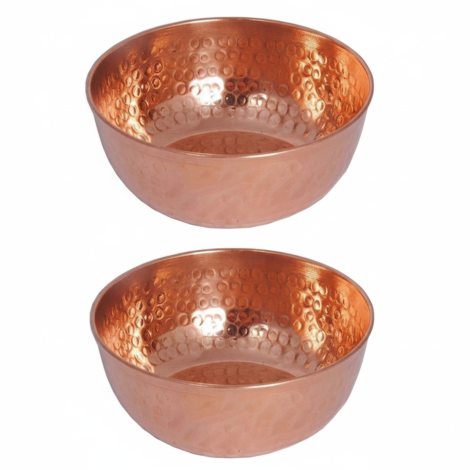 100% bol de service en cuivre pur ensemble de 2 conception martelée utilisée pour la fête porter des fruits de mariage bol en cuivre