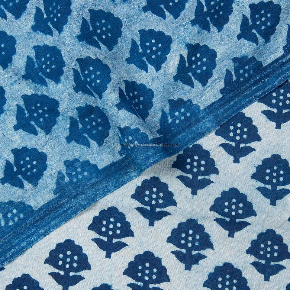 100% pur coton peigné organique Indigo main bloc imprimé fleuri tissu doux 120gsm tissé couverture pour femmes chemises Textiles de maison
