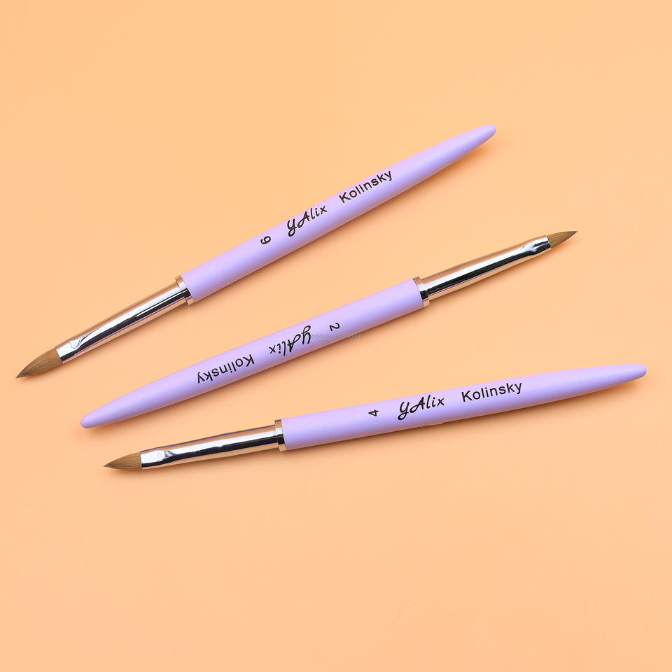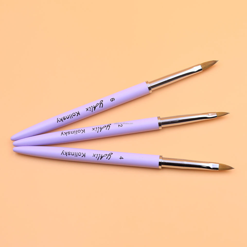Pinceau à ongles 3D 100% pur Kolinsky/Nylon, logo personnalisé, manche en métal violet, stylo de peinture 3D pour ongles, dessin, sculpture de fleurs