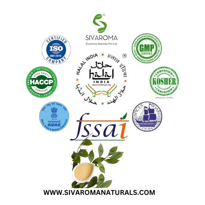 Certificate:ISO, GMP, MSME, HACCP, SPICES, HALAL, KOSHER, FSSAI