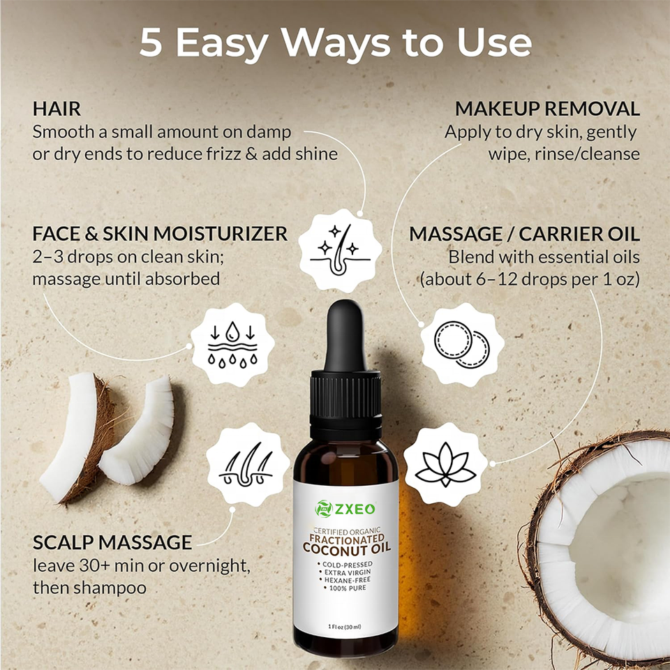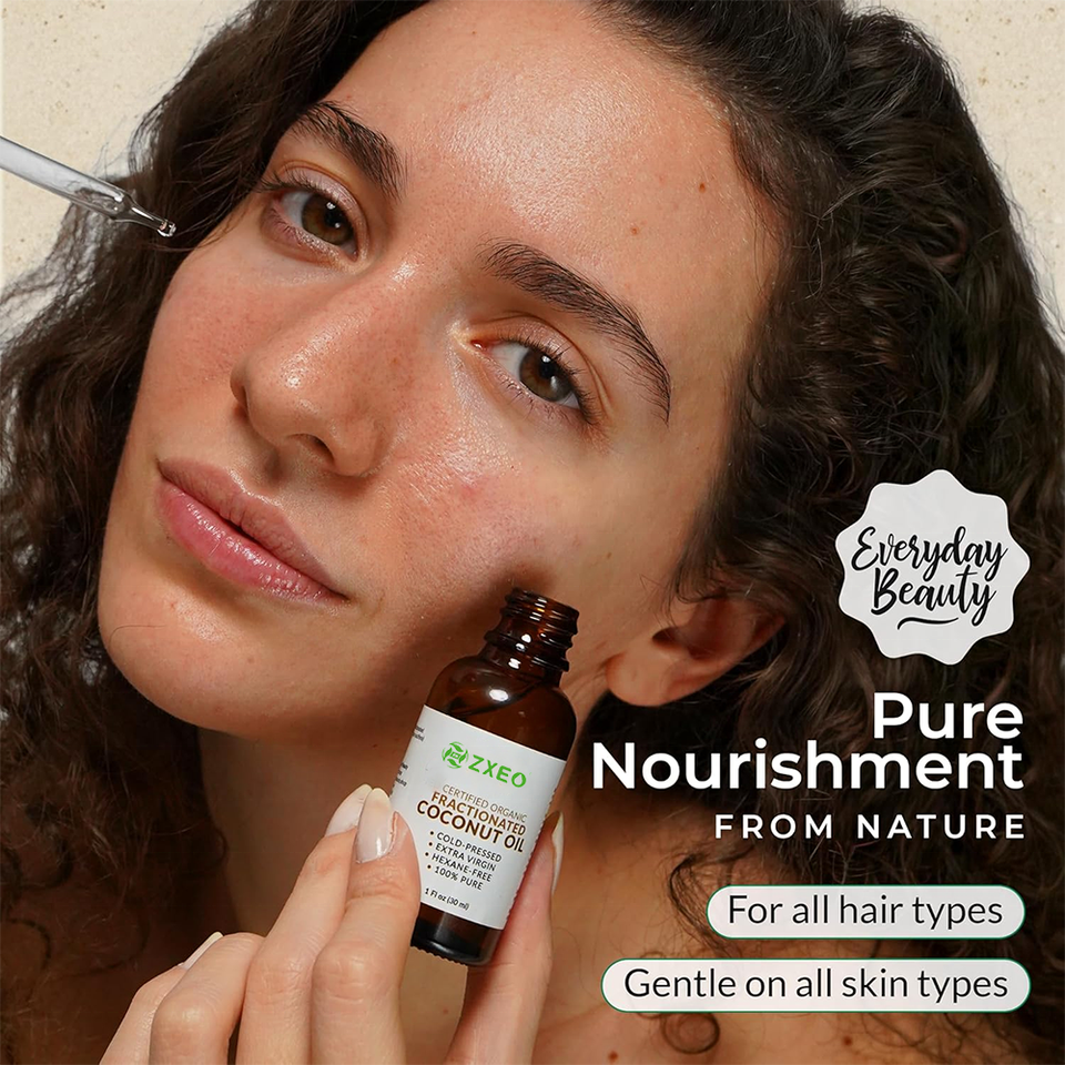 Huile de Coco Fractionnée 100% Pure OEM ODM, Huile de Coco Fractionnée Pressée à Froid, Huile Végétale pour le Visage, le Corps, les Cheveux, la Peau, Huile de Massage