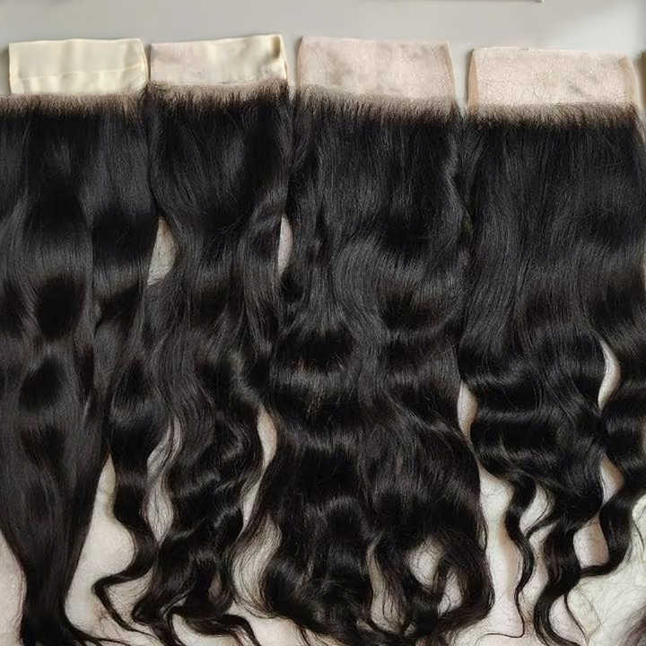 100% Raw Unprocessed Virgin Cuticle Aligned Human Hair Closure, Indian Human Raw Hair Loose Wave Bundles with lace closures