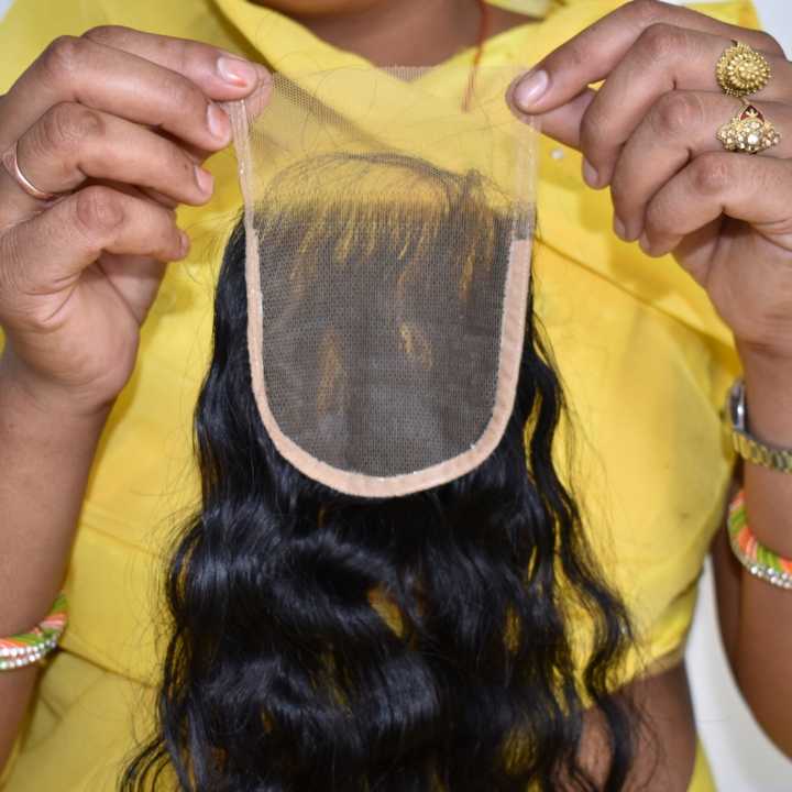100% cuticule vierge brute couleur naturelle noir 6*6 fermeture ondulée non traitée Temple indien Extensions de cheveux humains