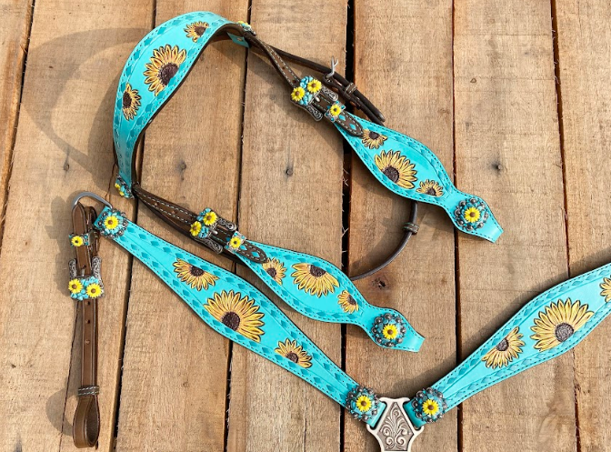 100% véritable argentine cuir de vache Western Headstall poitrine collier Tack ensemble usiné tournesol conception équitation circonférence Type