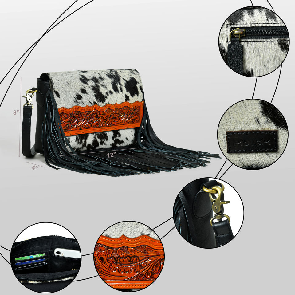 Contenu s'il y en a:Noir avec cuir de vache couleur TAN sculpté à la main