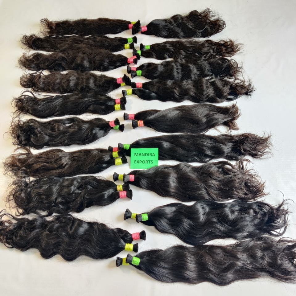 100% Remy non traité naturel noir temple vietnamien Extensions de cheveux humains en vrac ondulé dentelle Style Double dessiné extrémités de cheveux