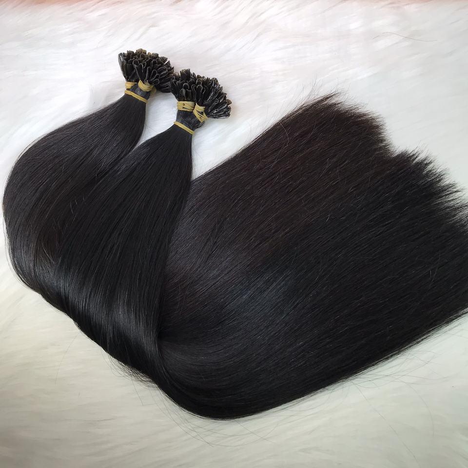 100% Remy vierge Vietnam kératine U pointe naturelle droite couleur noire Super Double dessiné Extensions de cheveux humains