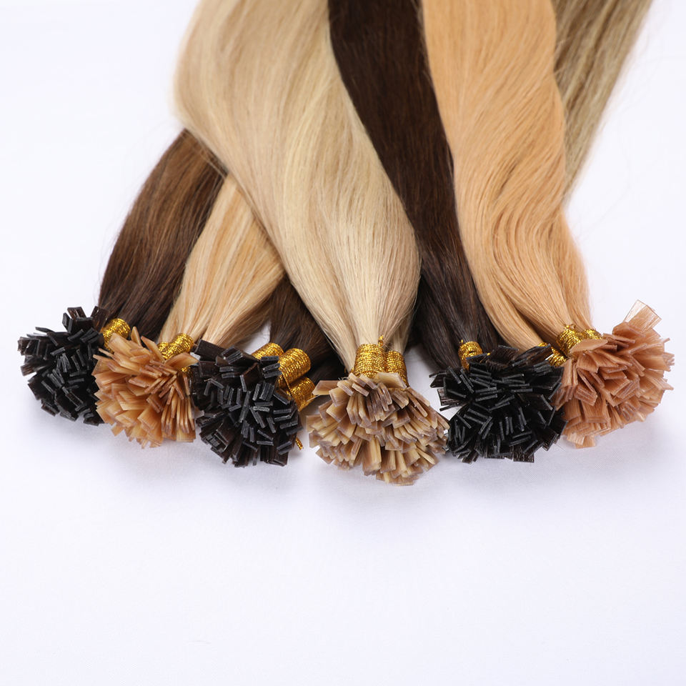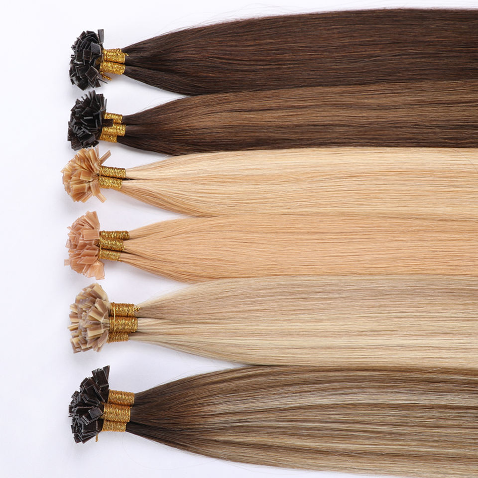 Extensions de cheveux humains vierges Remy 100% russes, cuticules alignées, qualité supérieure, pointes plates pré-collées, ondulation naturelle, double machine