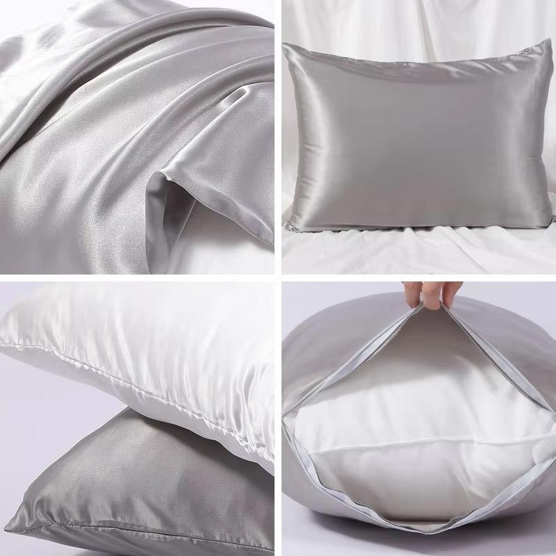 100% soie taille Standard taie d'oreiller doux respirant Satin caché fermeture éclair antistatique solide dessin animé feuilles plus doux taies d'oreiller en soie