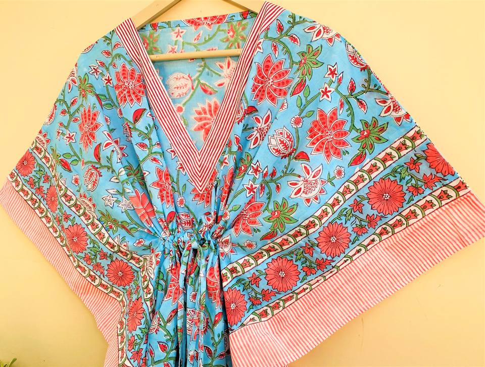 100% doux coton Floral main bloc imprimé vêtements de nuit maillots de bain vêtements décontractés Abaya mariage femmes caftan robe Sanganeri tissu