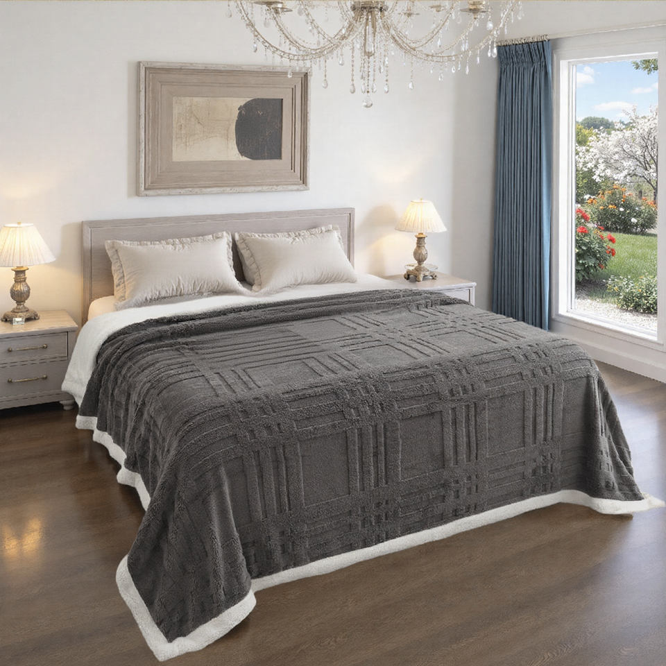 Couverture d'hiver chaude et douillette en polaire jacquard tissée en Europe, prête à être expédiée, pour canapé, lit, maison, fourrure moelleuse