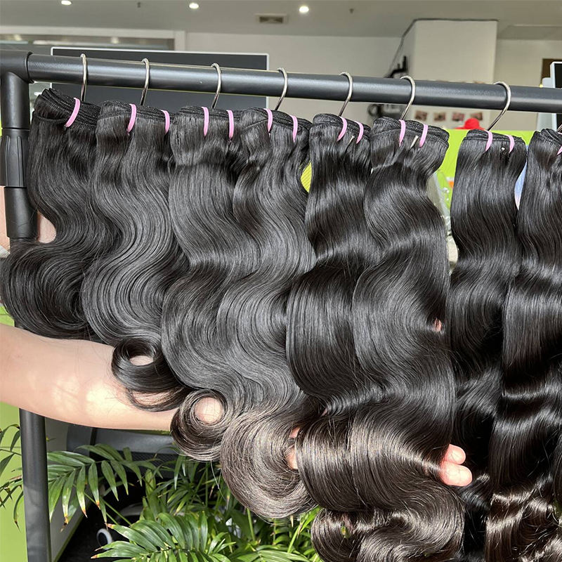 100% Bundles ondulés naturels brésiliens non transformés Extensions de cheveux bruts humains en forme de vague de corps parfaite