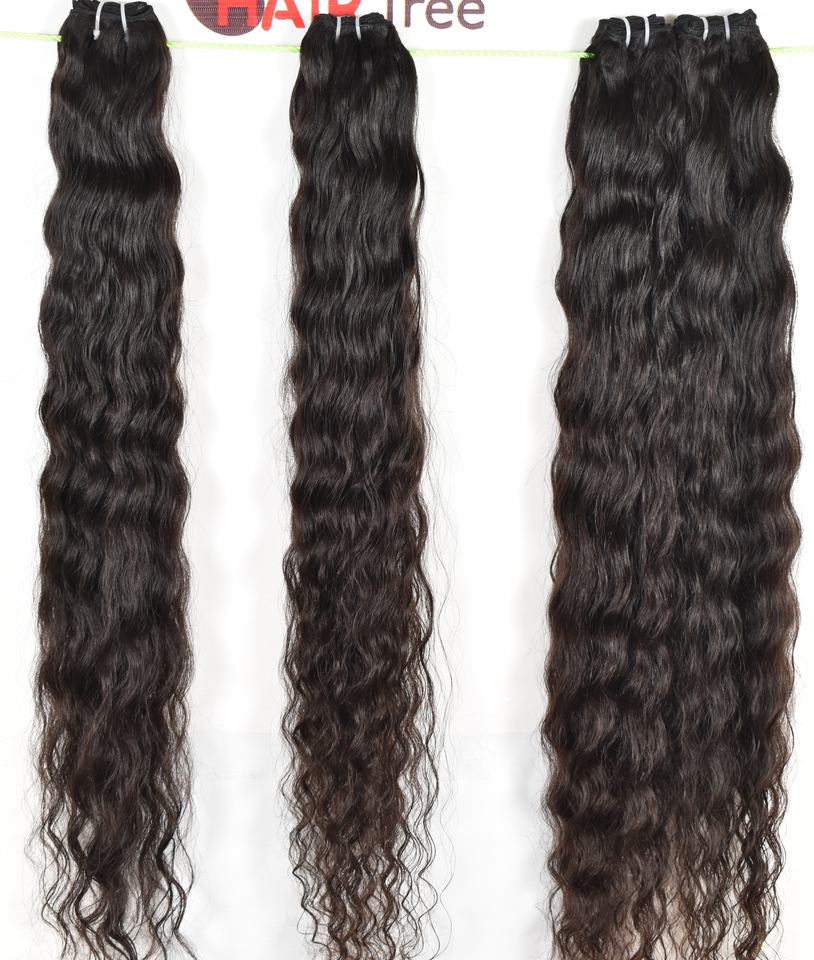 Extensions de cheveux humains indiens de temple, 100% vierges, non traités, provenant d'un seul donneur, cuticules alignées, naturellement ondulées, couleur noire, en mèches.