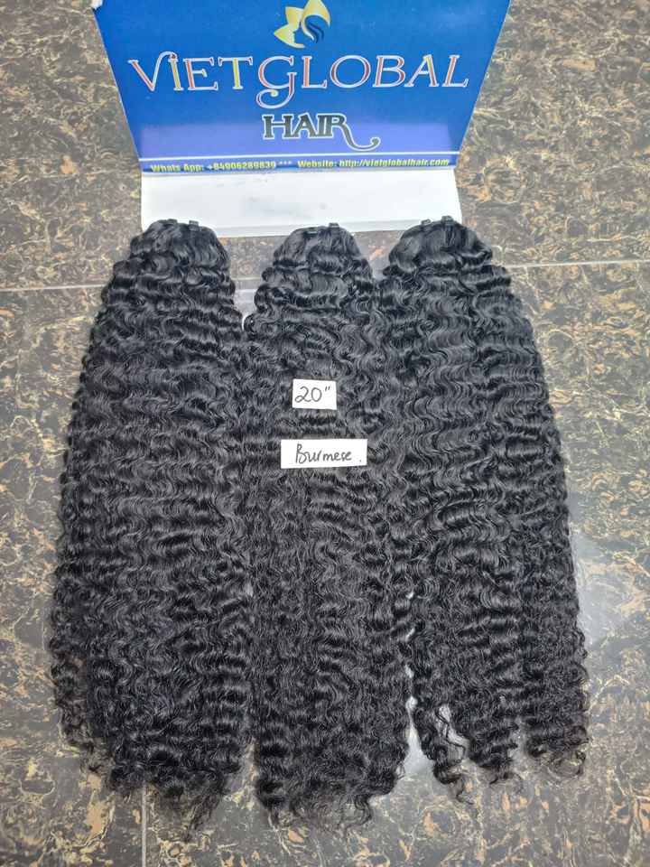 100% Extensions de cheveux pour filles vietnamiennes non transformées paquets birmans bruts perruques bouclées à vague profonde faites à la main au Vietnam
