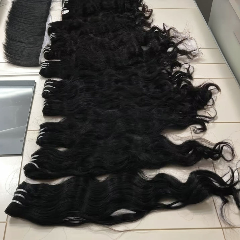 Tissage de cheveux humains vierges non traités à 100 %. Extensions de cheveux bruts les plus vendues. Cheveux humains de temple d'Inde du Sud à cuticules alignées.