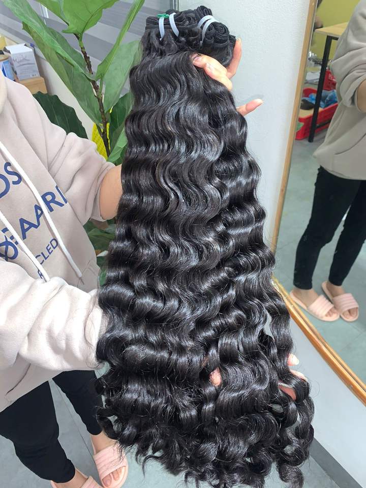 100% Vietnamien Océan Ondulé Couleur Naturelle Extensions de Cheveux Humains Super Double Dessiné Qualité Machine Trame