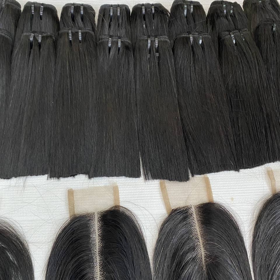 Extensions de cheveux humains vierges Remy 100 % vietnamiens, lisses, avec closure, pour femmes noires, marque privée