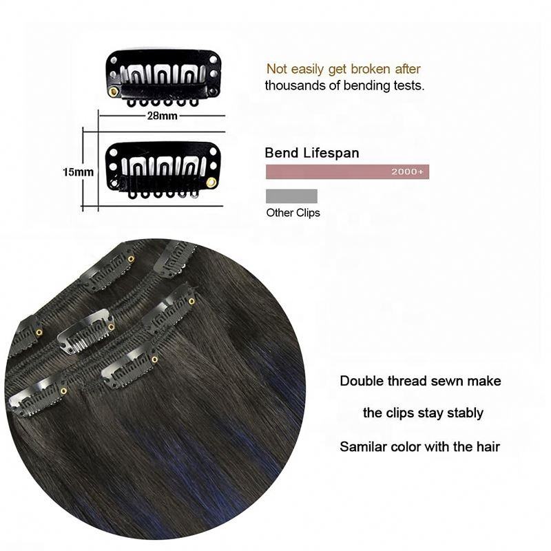 Extensions à clips 100% cheveux humains vierges Remy du Cambodge, effet naturel, volume complet, double trame machine