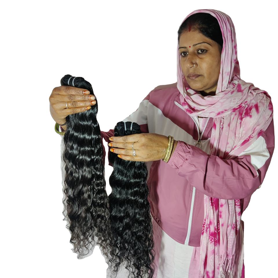 100% Vierge Indien Remy Machine Double Trame Extensions de Cheveux Couleur Noire Naturel Long Bouclés Bundles 8 Pouces Wave Curl Confiance