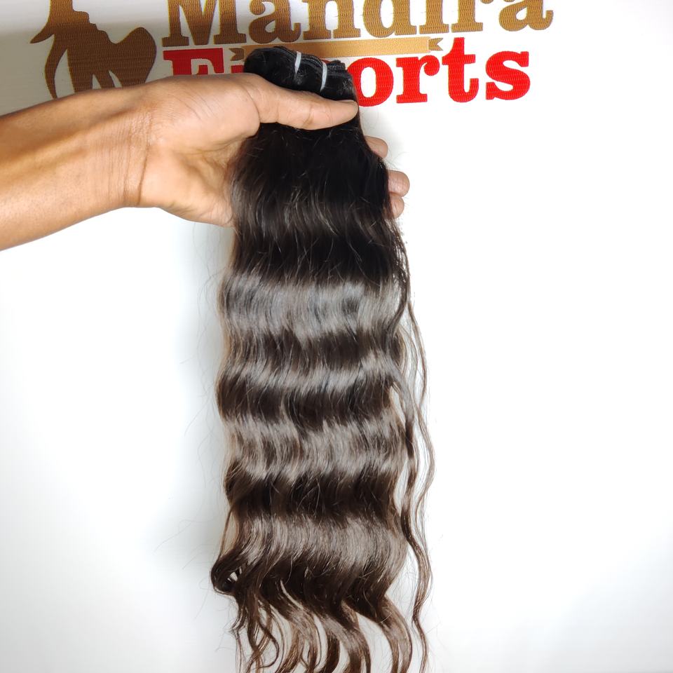 100% Virgin Indian Temple Human Hair Extensions Double Weft Natural Soft Wavy Bundles Raw Unprocessed Curl Style