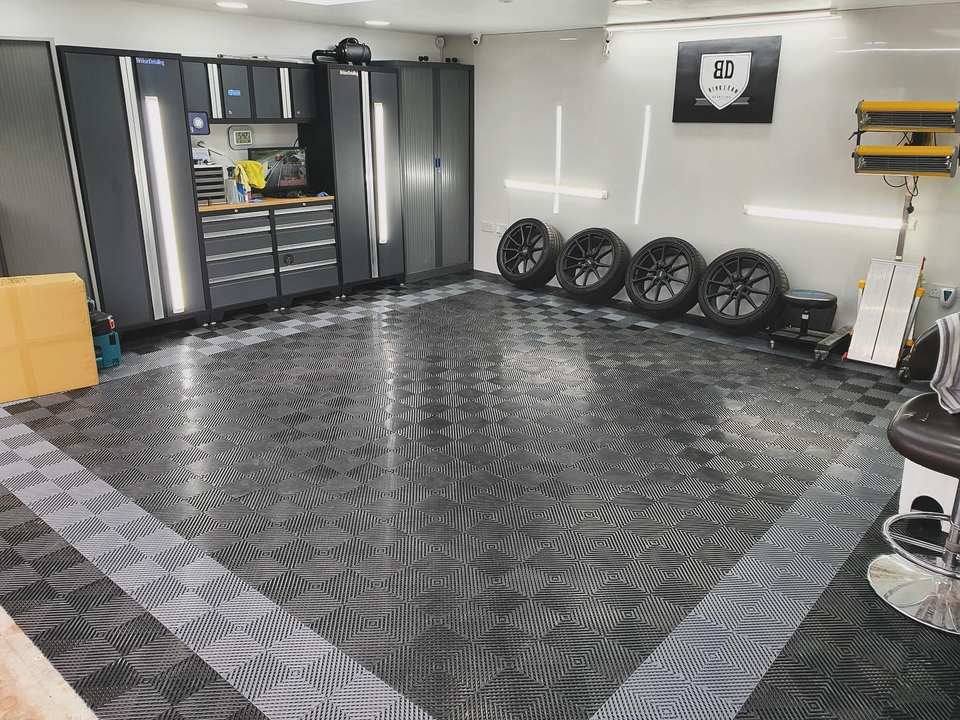 Dalles de sol de garage emboîtables durables antidérapantes en PP vierge à 100 %, épaisseur 18 mm, pour le detailing automobile et les stations de lavage 4S