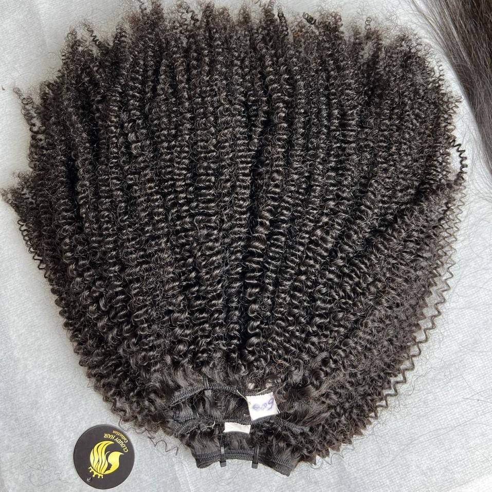 100% Virgin Vietnamese Kinky Curly Weft Hair Extensions High Quality Raw Human Hair in Natural Black Color