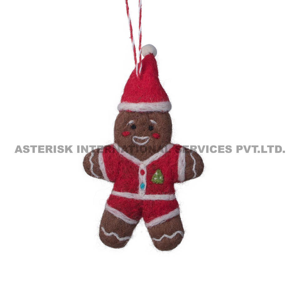 100% laine feutre fait à la main pain d'épice homme jouet Beige-marron arbre de Noël suspendu ornement pour enfants adultes idéal pour les décorations de vacances