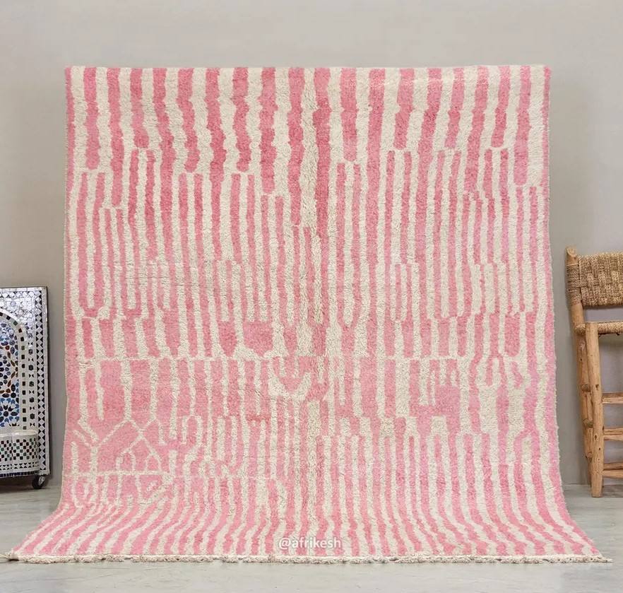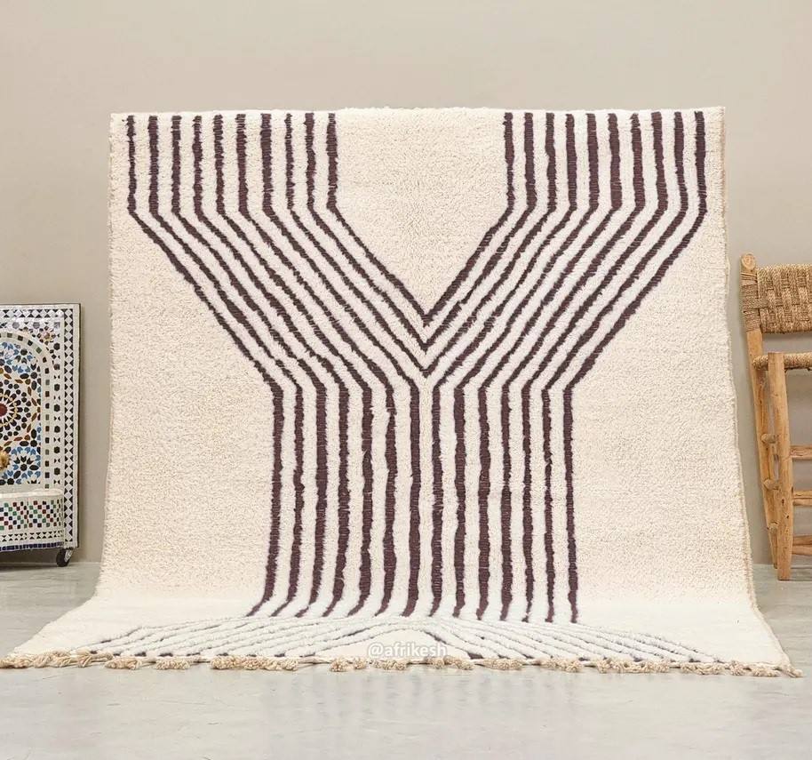 Tapis Beni Ourain 100% laine noué à la main – Tapis berbère marocain géométrique shaggy fait main, taille personnalisée, vente en gros