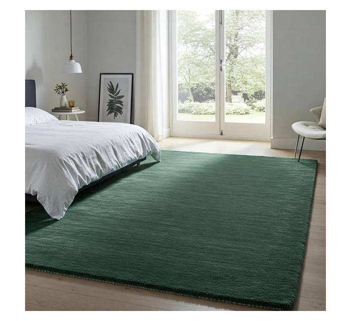 Tapis 100% laine tissé à la main vert émeraude uni texturé, robuste, doux et durable, fabrication directe OEM/ODM