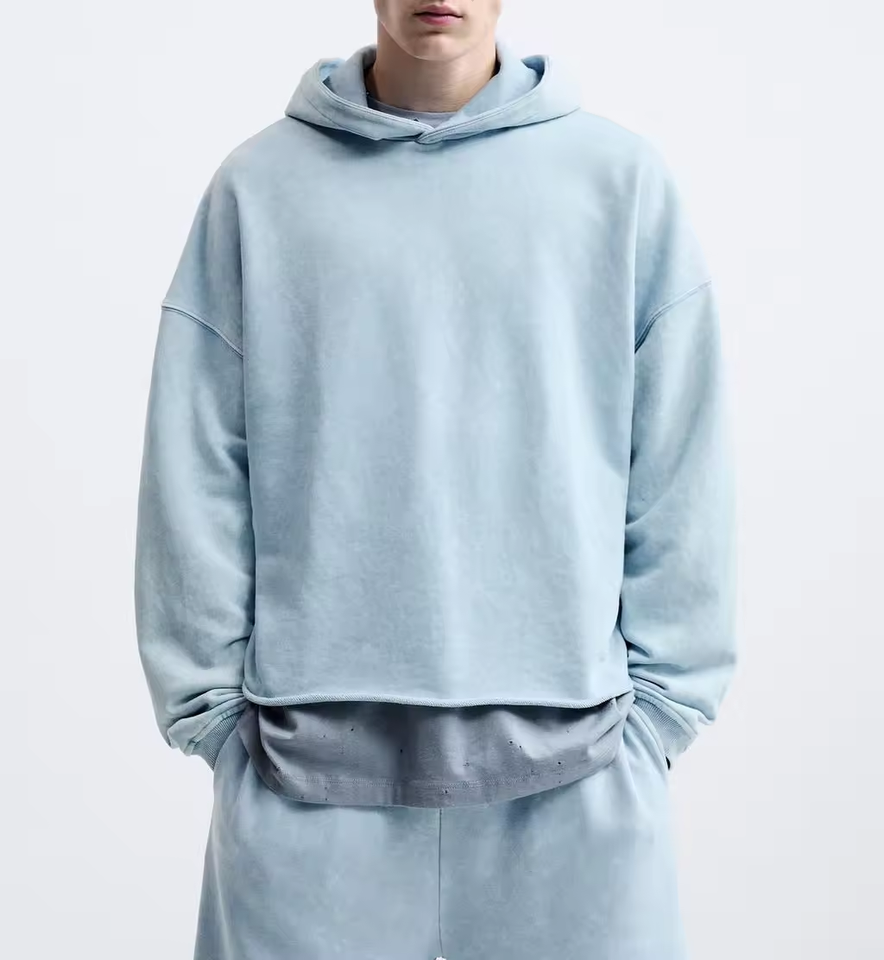 100% cotton puff printing hoodie manufacturer vintage wash oversized drop shoulder cropped raw hem hoodie boxy streetwear