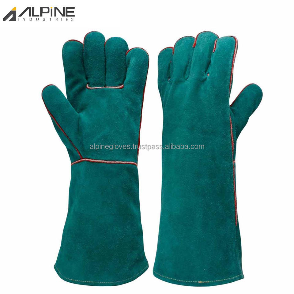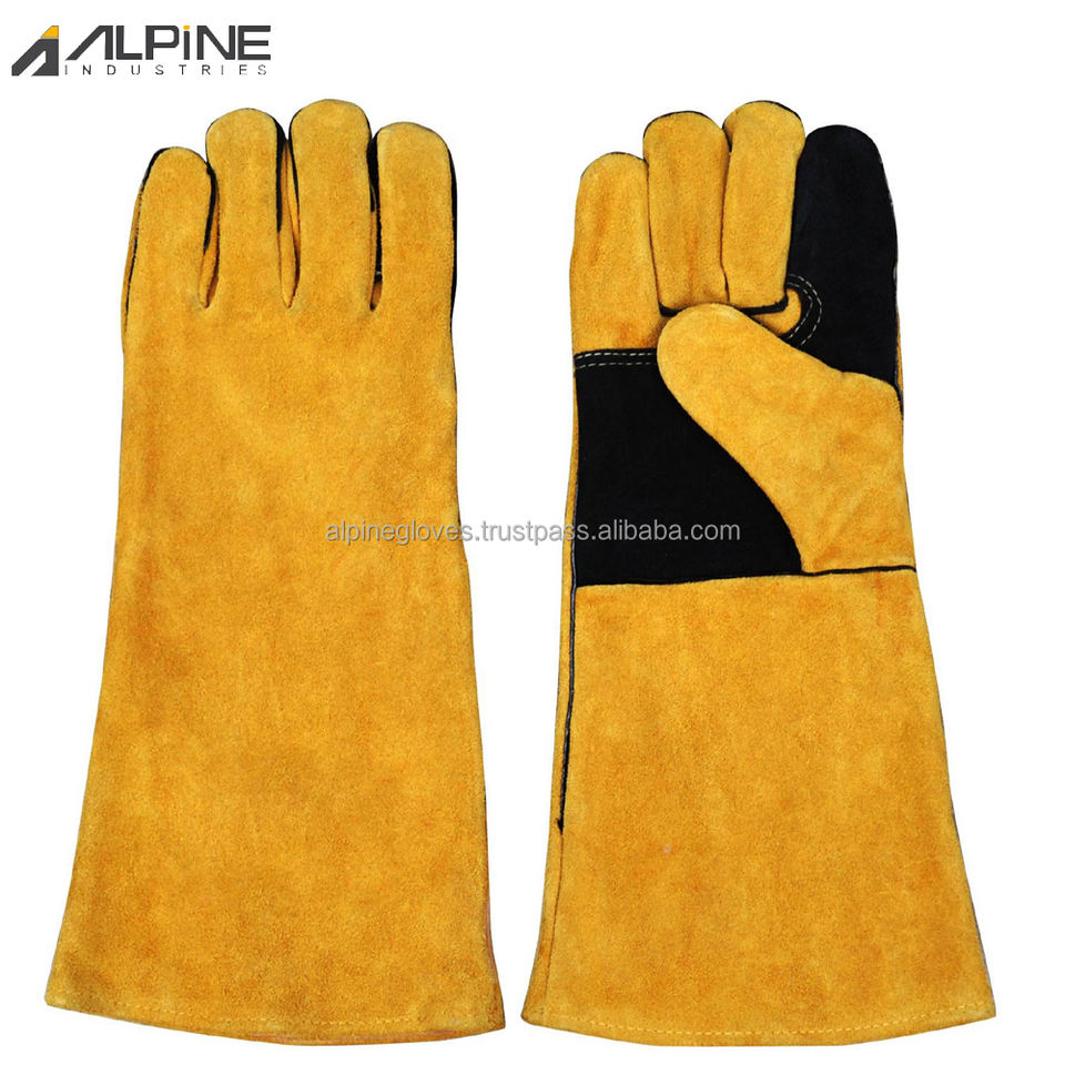 Gants de soudeur MIG Alpine Industries AG-10177 unisexes en cuir de vachette pleine fleur, enduits de latex, résistants à la chaleur