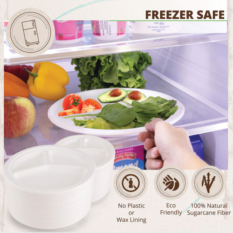 100% naturel 3 Compartiment Jetable de Fiber de Canne À Sucre Plaques Écologique Biodégradable Bagasse Plateau